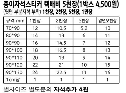가로cm x 세로cm x 1.1 (택배비 부가세별도)